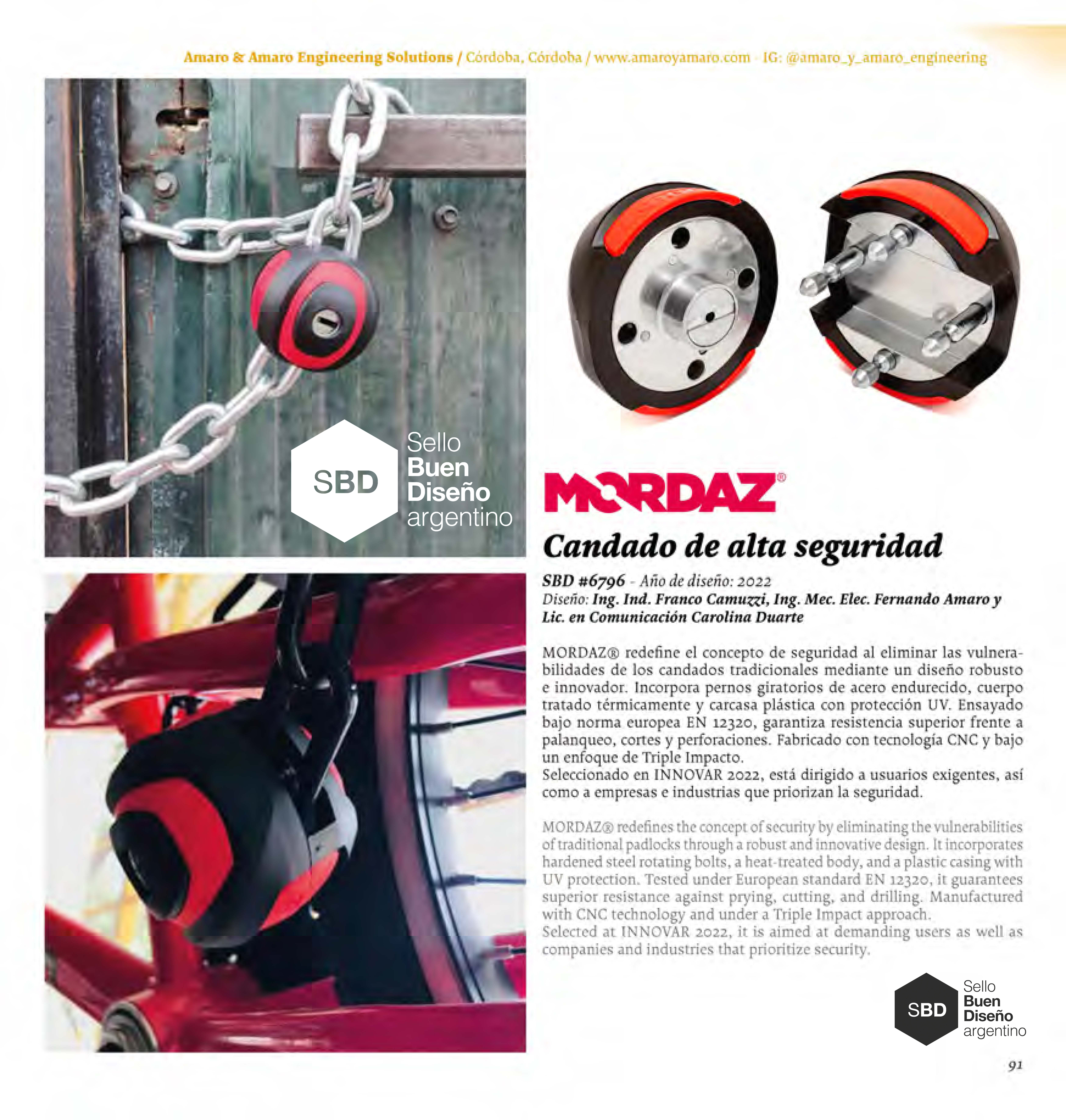 Amaro & Amaro Engineering Solutions recibió la distinción Sello Buen Diseño Argentino por el desarrollo de MORDAZ® candado.
